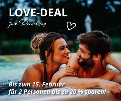 Vom 4. bis 15. Februar gibt es unseren Love-Deal zum Valentinstag: Jetzt Eintrittsgutschein für 2 Personen inklusive Thermencocktail zum Special-Preis sichern, 20 % sparen und Zeit zu zweit genießen! Der Gutschein ist für den Eintritt mit 2 Personen innerhalb eines Besuches bis zum 30.09.2026 einlösbar, inkl. 1 Thermencocktail pro Person im SoleBad. Ab dem 01.10.2026 erfolgt die Einlösung als Wertgutschein zum oben angegebenen Wert. Nicht mit anderen Aktionen kombinierbar.€ 50.00 -
